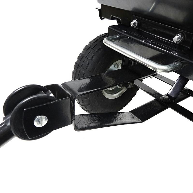 Large rubber pneumatic wheels with bearings ensure smooth movement even under heavy load. The cart’s container can be easily emptied by tipping, like a dump trailer.
