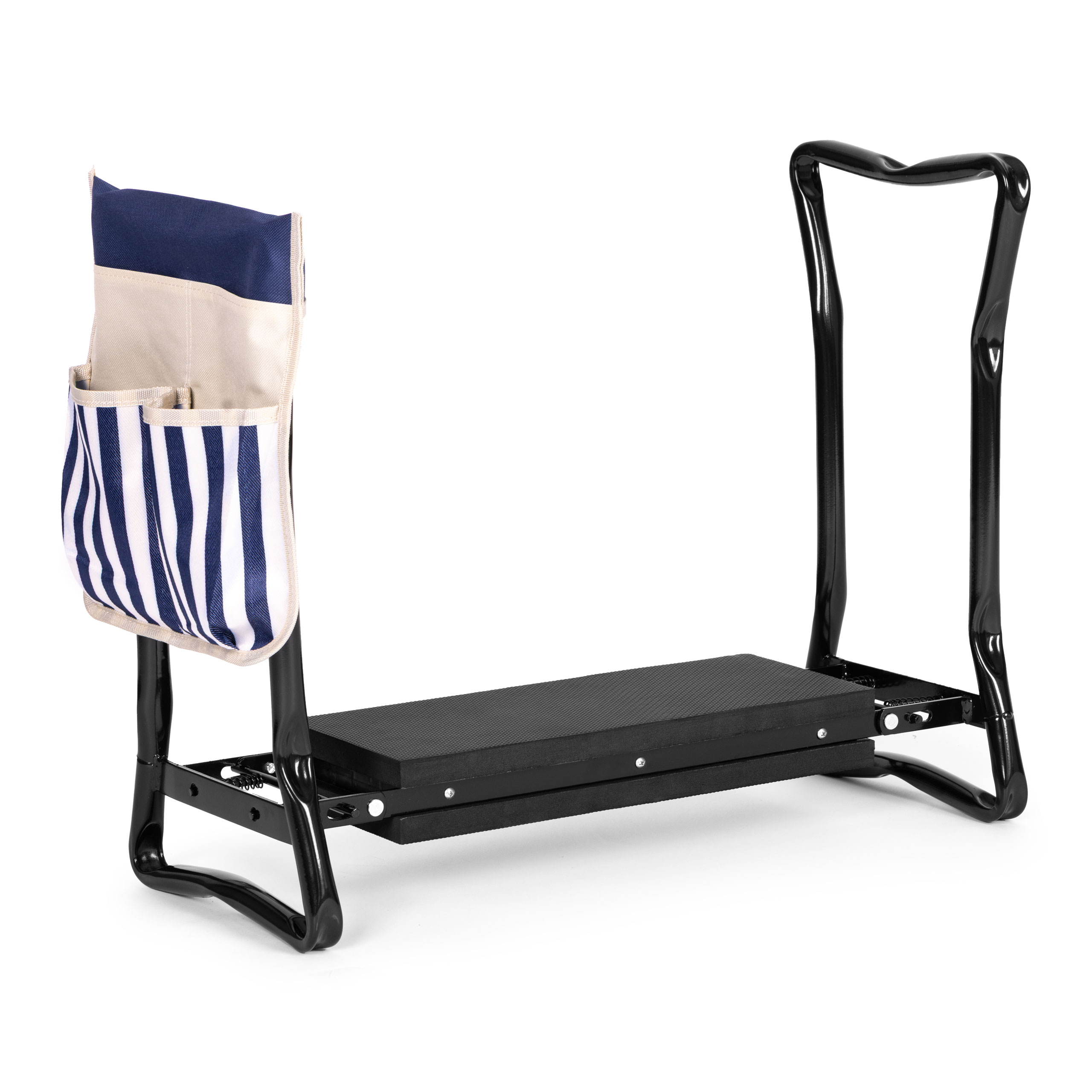 - Thanks to its solid metal construction, the kneeler can withstand a heavy load, which ensures its stability when standing up from a kneeling position, avoiding the need to support yourself on the ground. To fold the kneeler, simply press the lock mechanism.