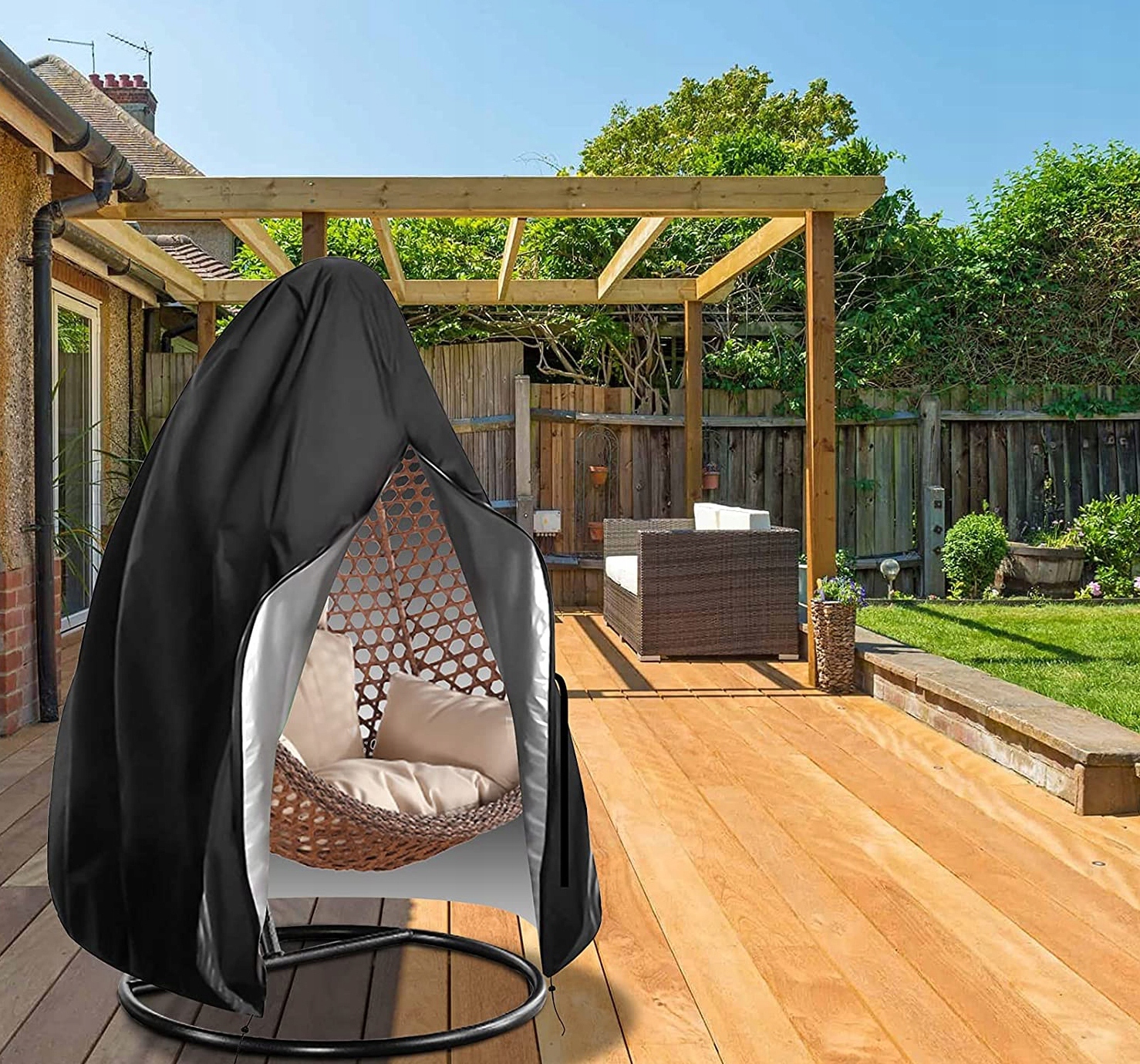 Waterproof cover for hanging garden chair / swing.