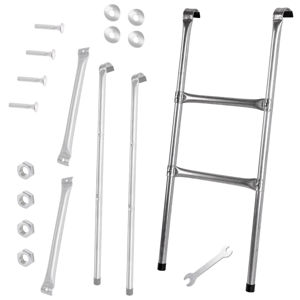 Ensure safe and easy access to your garden trampoline with this universal 2-step ladder. Crafted from durable galvanized steel, it guarantees stability and a long service life. This trampoline ladder is compatible with most trampoline models from various manufacturers, making it a practical and essential accessory for any setup.
