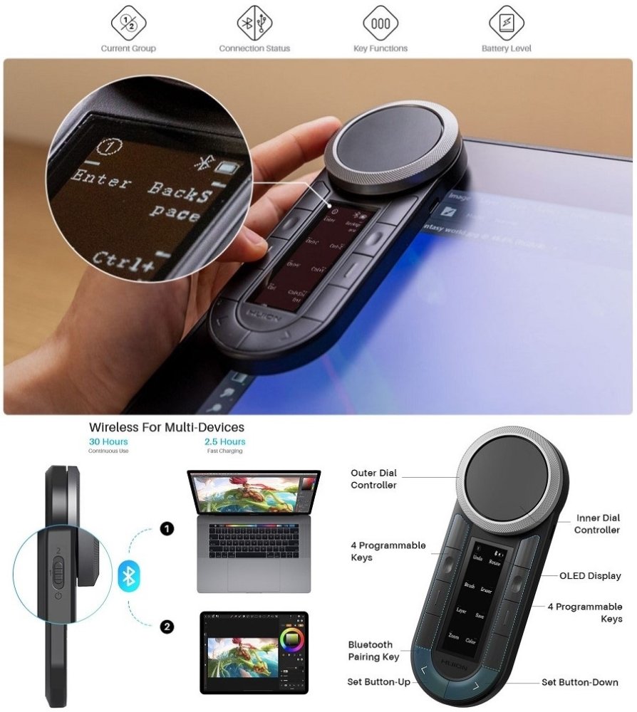 Huion Keydial Remote K40 Wireless Shortcut Controller Bluetooth 5.0