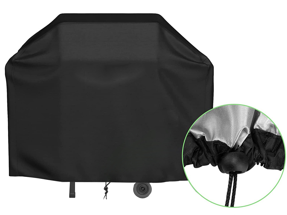 Made of quality materials, durable and elegant, looks good in the garden. It has a drawstring at the bottom, which provides reliable protection against disruption of the cover from the grill by gusts of wind.