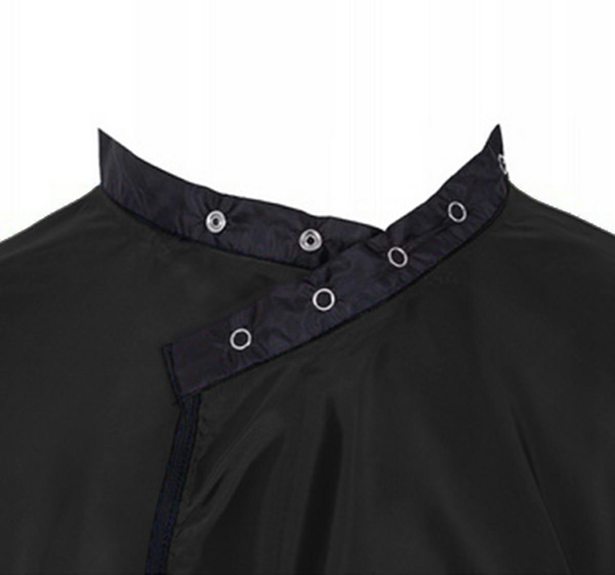 Our hairdressing cape black is an essential salon accessory, crafted from durable, breathable nylon to protect clothing during haircuts.