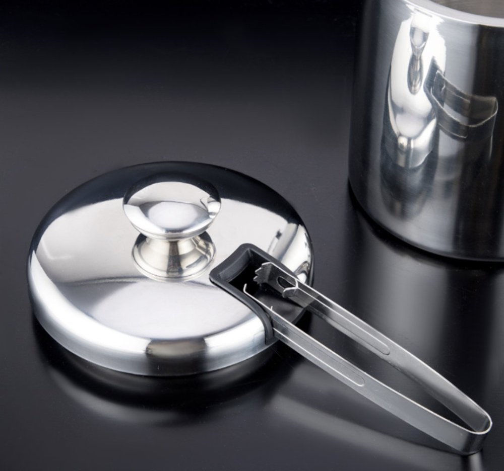 1.3L Ice Bucket with Tongs and Spoon Mini Portable Stainless Steel Champagne Wine Beer Bucket for Bar Party Event