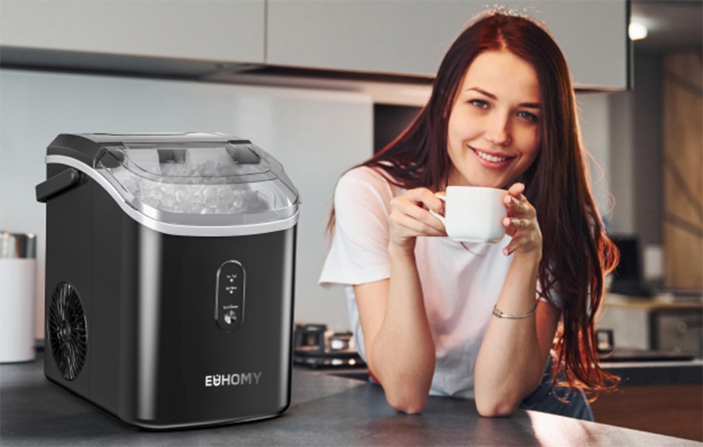 Euhomy IM002 Nugget Ice Maker, 15.4kg/24h, Self-Cleaning, Fast 6-Min Production