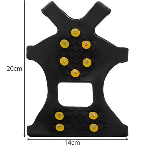 - SPECIFICATIONS - color: black/yellow/silver; material: TPE/metal; number of teeth in 1 cancer: 10; size: M: 35-39; rubber thickness: 0.3 cm; spike height: 3.5 mm; flat dimensions: 20 x 14 cm; weight: 128 g; weight with packaging: 132 g.