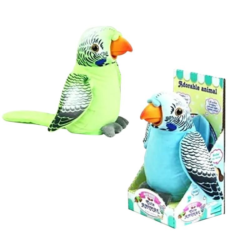 An interactive plush toy parrot that repeats sounds it hears in a funny voice... The toy can repeat sounds recorded from the surrounding environment, making it resemble a real bird not only in appearance but also in behavior. The parrot can be turned off if you want to use it as a plush toy.