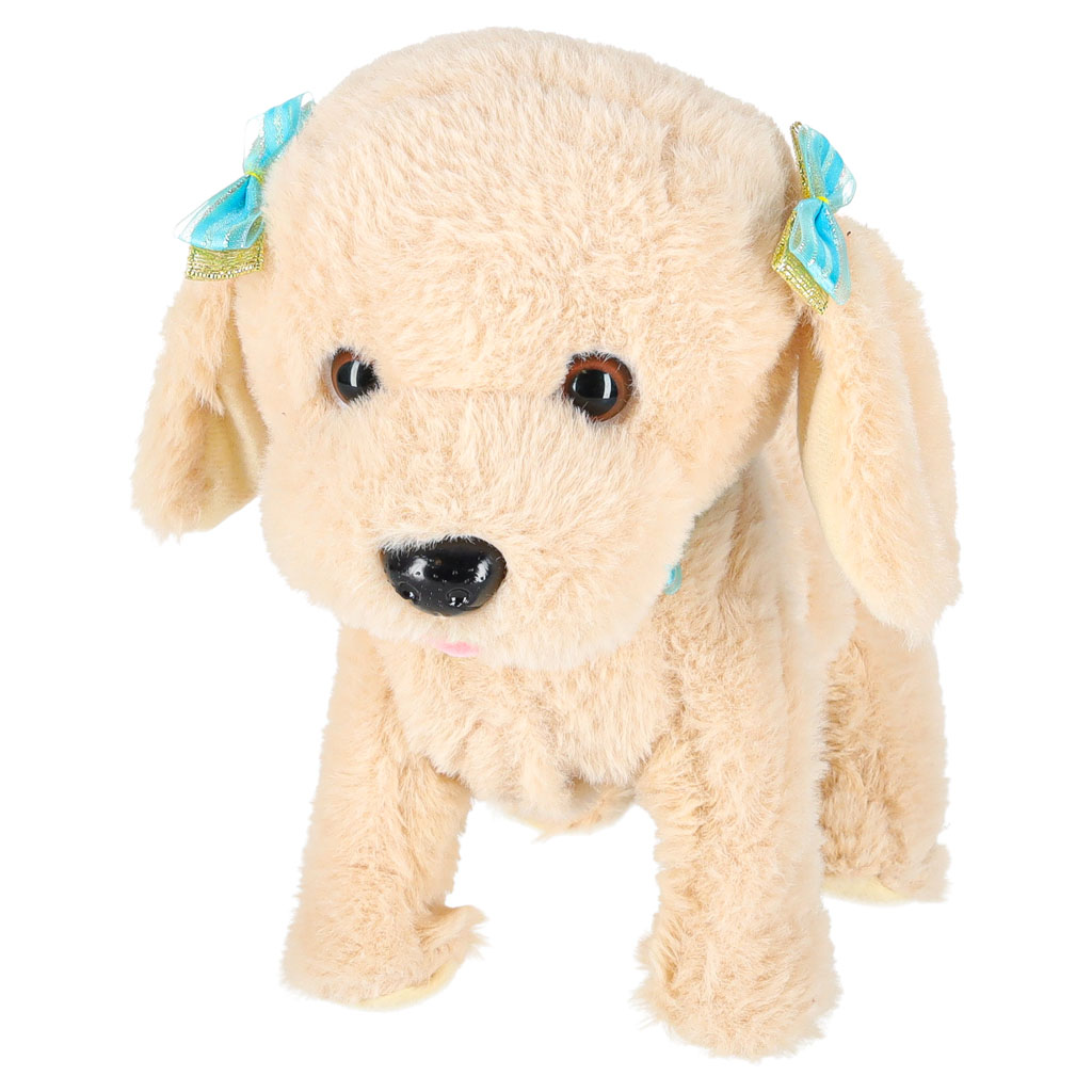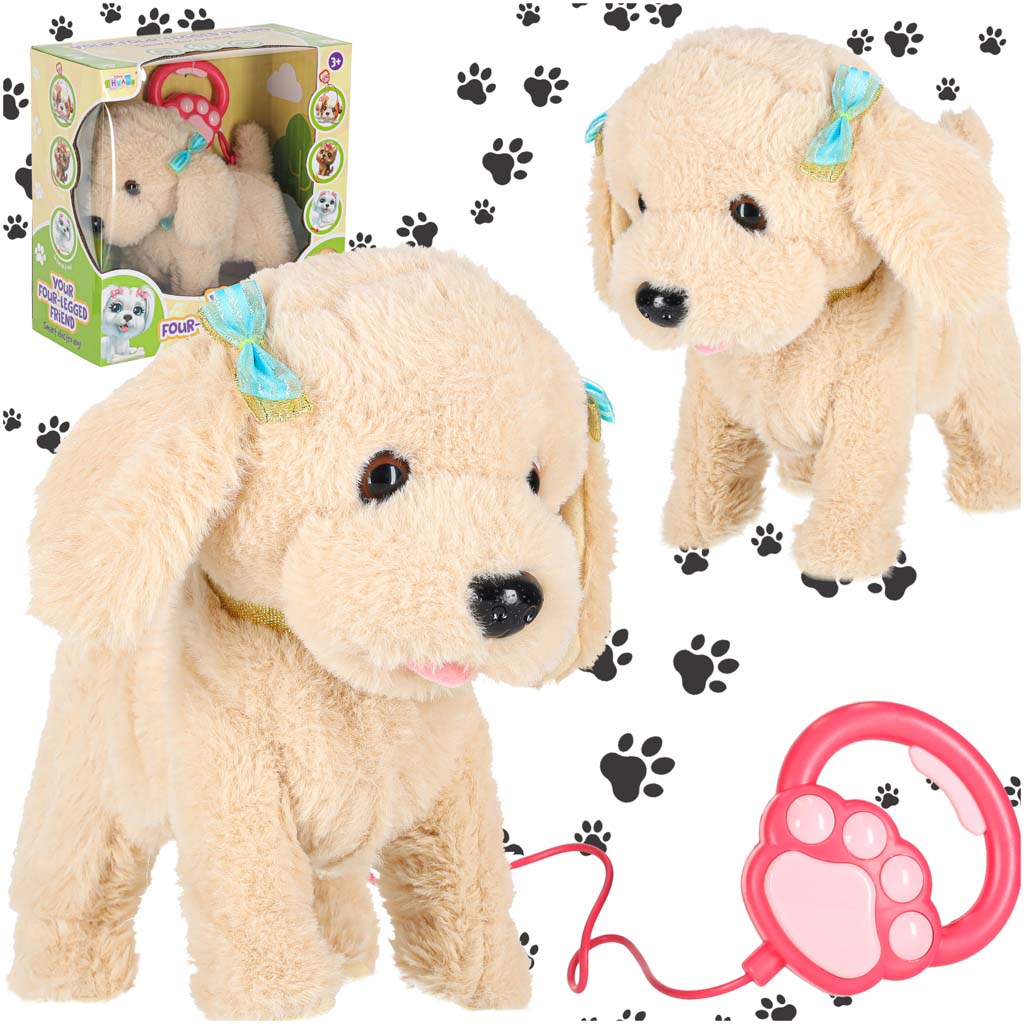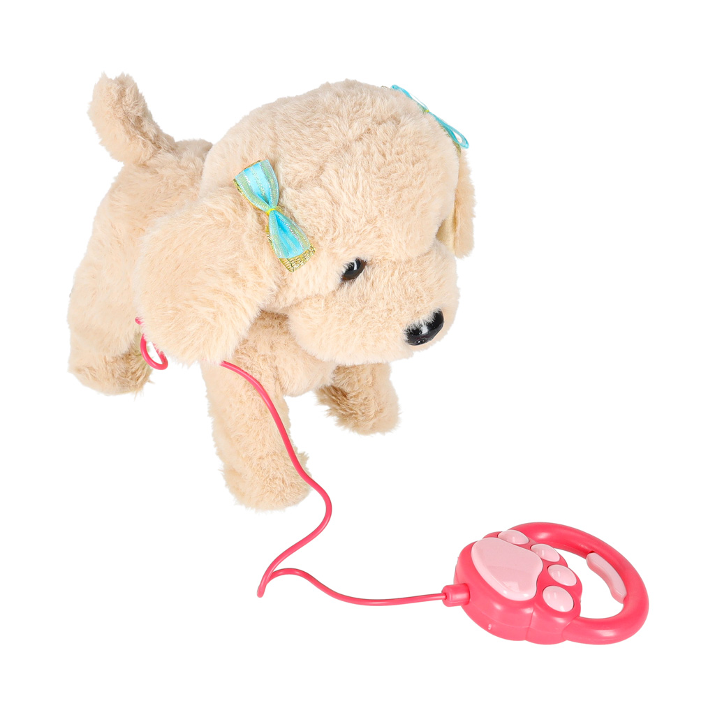 Interactive Walking Poodle Toy Dog on a Leash, Barks and Wags Tail, Beige