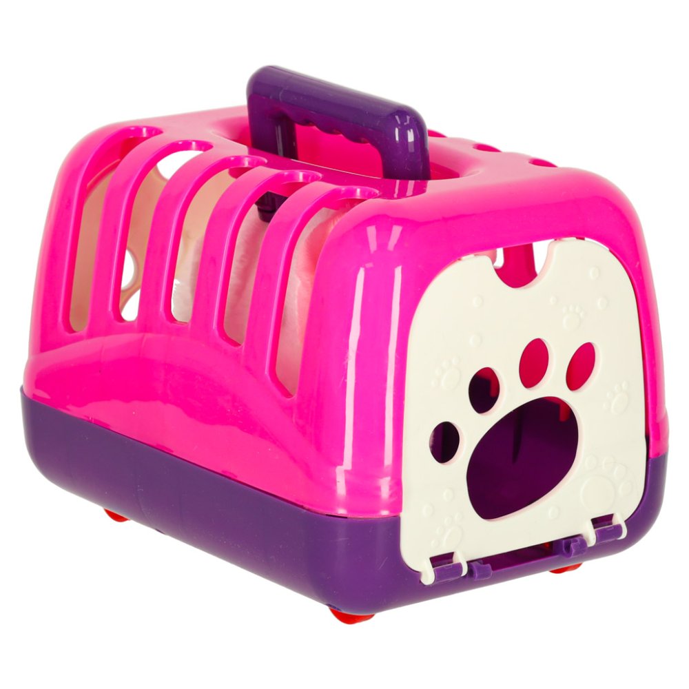 Interactive plush bunny with moving ears and basket, white/pink/purple