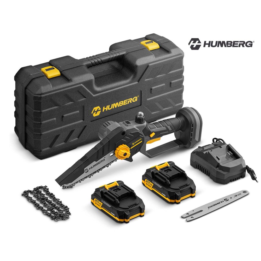 Cordless Mini Chainsaw Humberg HM-421 with 2 Batteries 21V Brushless Motor