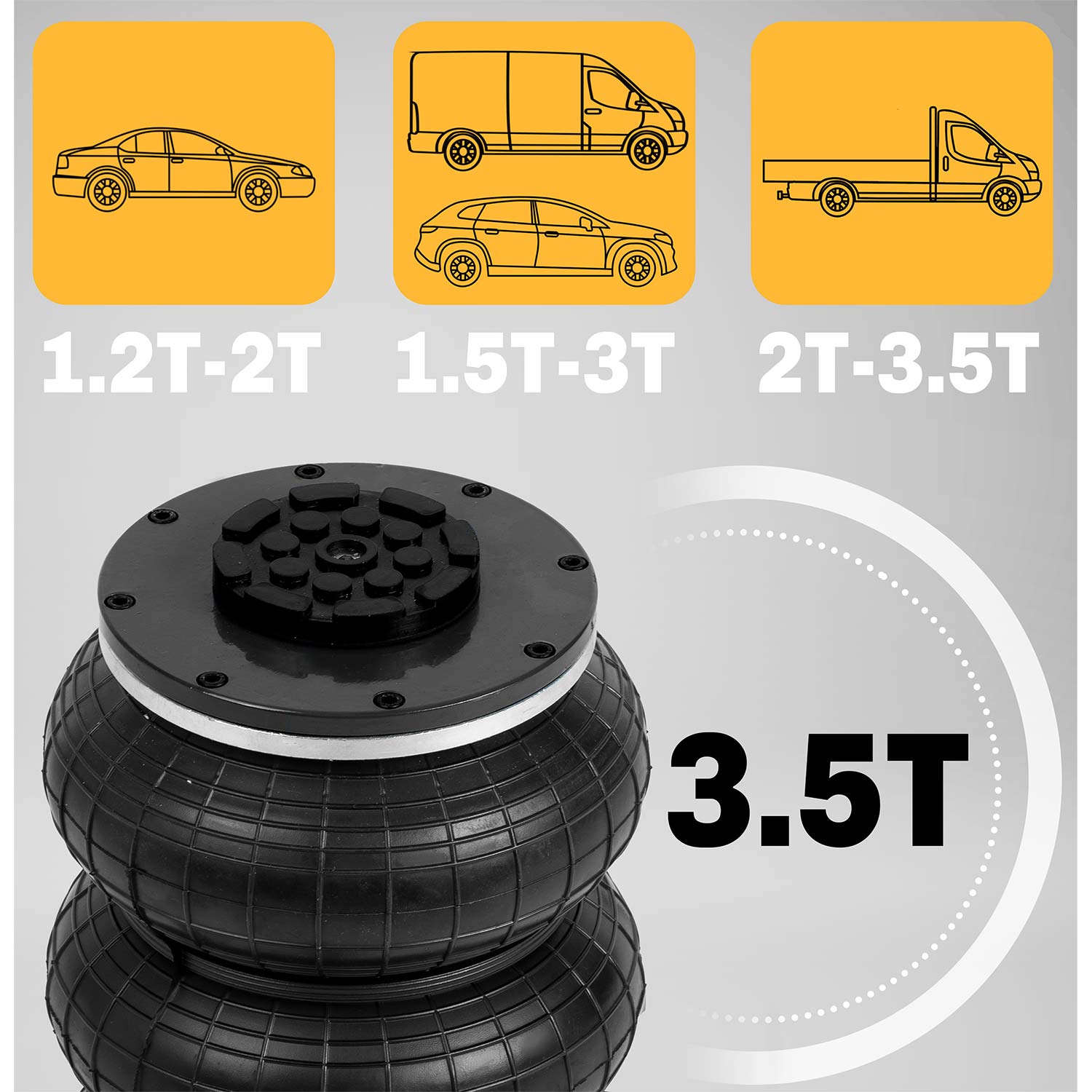 - High Capacity: Lifts cars, SUVs, and light commercial vehicles up to 3.5 tons (7,700 lbs).