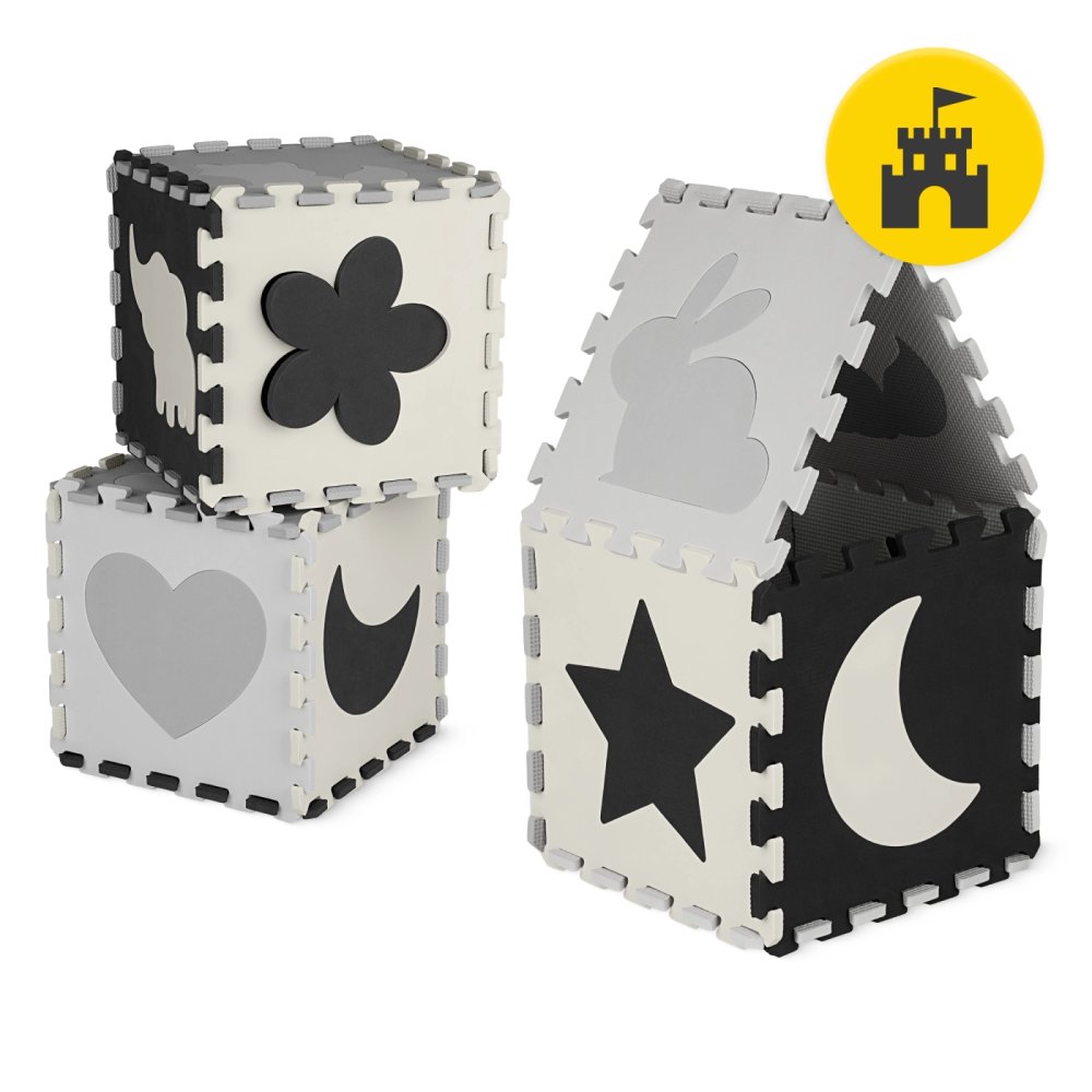 This play mat is designed with your child's safety and comfort in mind. Made of soft EVA foam, it perfectly cushions falls and protects against cold floors. Thanks to its puzzle design, it can be easily adapted to the space or used as a creative building element.