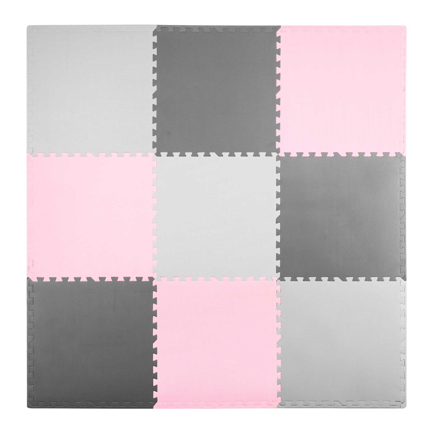 Ricokids Interlocking Foam Puzzle Play Mat 180x180cm 9 Tiles, Grey & Pink