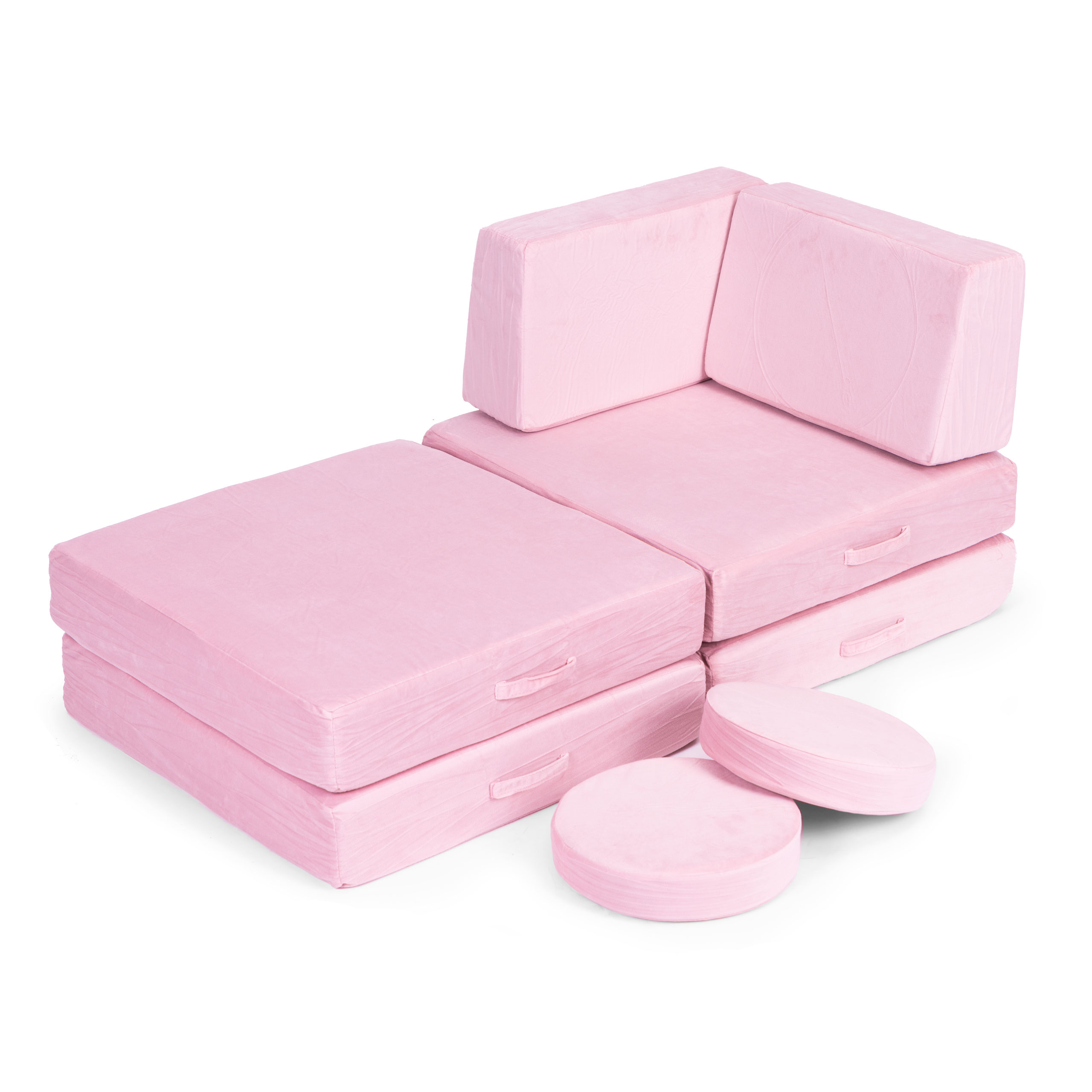 Large Modular Kids Play Couch 8-Piece Buildable Foam Sofa, Pink ECOTOYS