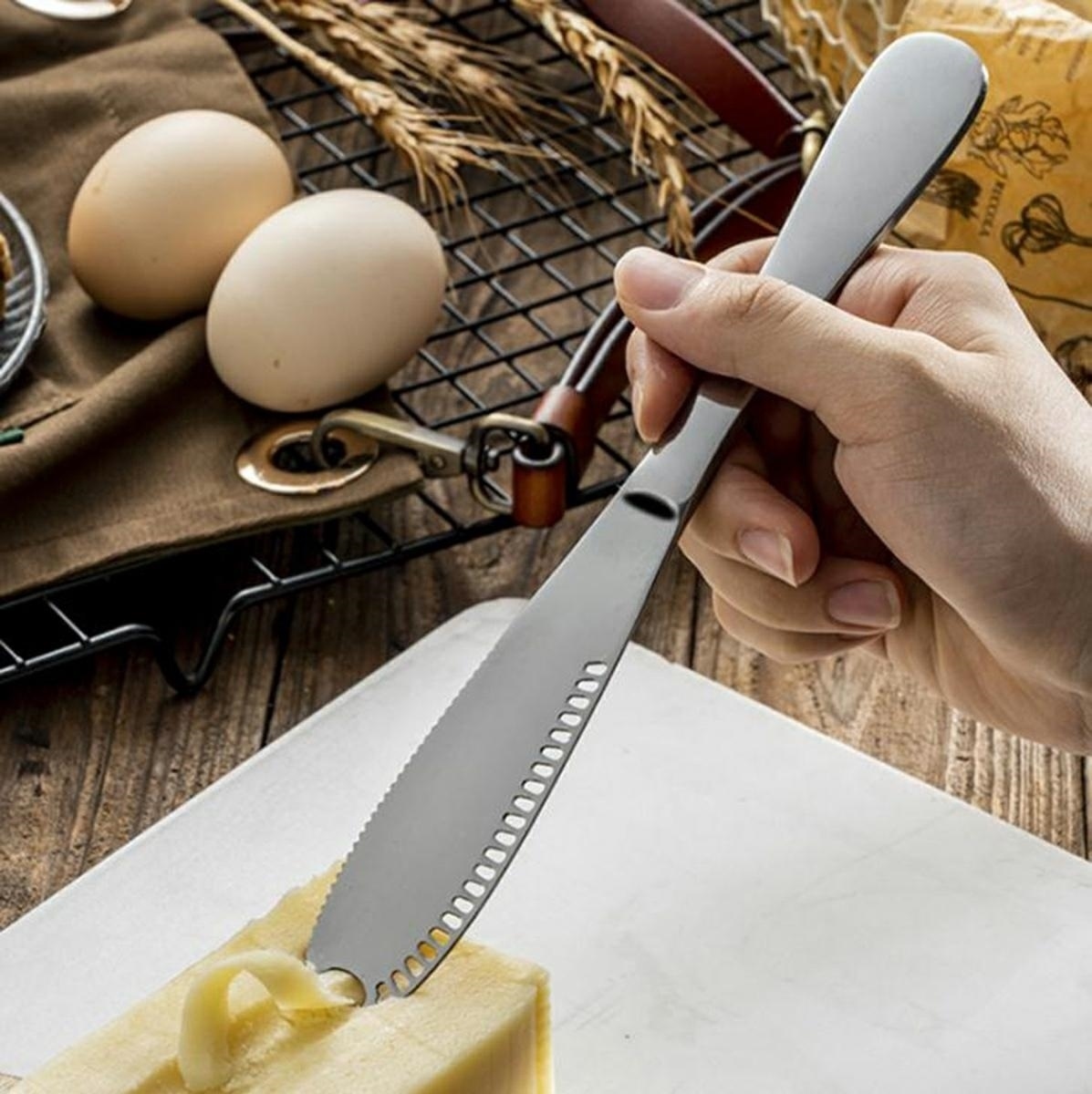 Steel Knife for Convenient Cutting of Butter with Holes, 20 cm