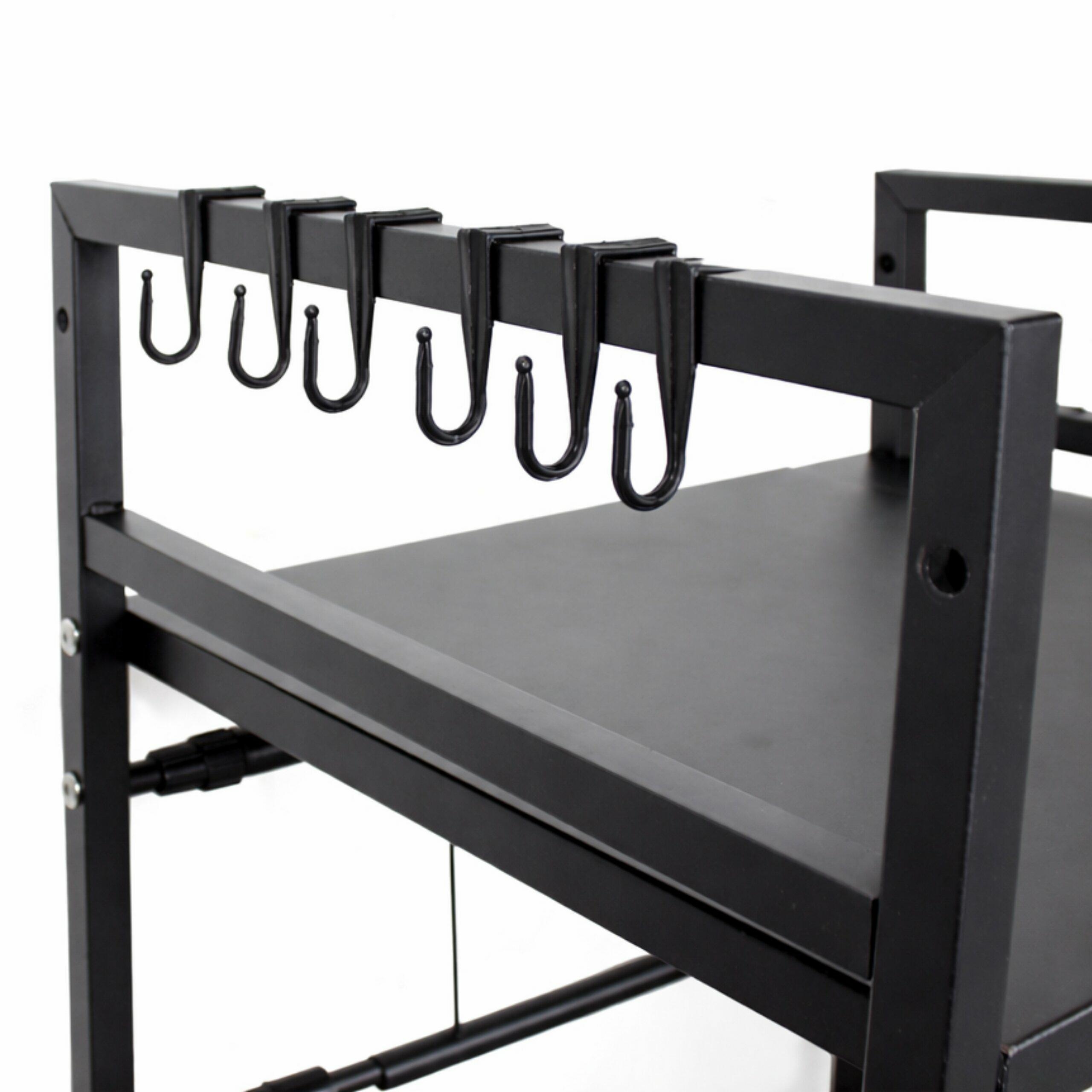 Is your countertop cluttered with appliances and accessories? This versatile microwave oven rack is the perfect solution to maximize your space and keep everything neatly organized. Its durable steel frame provides a stable platform for your microwave, while the top shelf offers valuable storage for spices, dishes, or other small kitchen gadgets. The sleek black finish complements any modern kitchen decor.