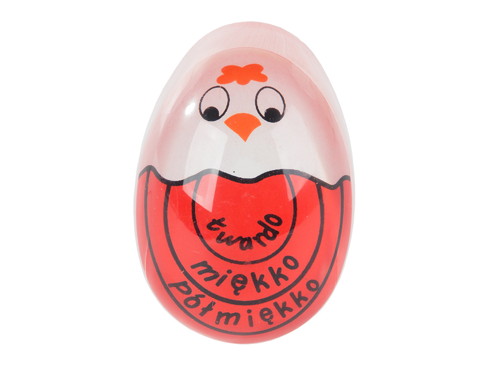 The principle is very simple. The red colour slowly fades to the centre and a white colour develops on the sides, like the white of an egg. The longer the eggs are cooked, the more white colour will appear on the timer which means that the eggs are curdling more.
