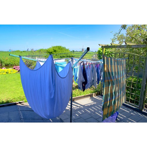 OUTDOOR ROTATING LAUNDRY DRYER - laundry dried outside not only has a beautiful smell, but also a short drying time. A garden dryer is perfect for both large and small laundry. The wide spacing of the lines on which the laundry will be hung makes it dry faster. Thanks to its design and supporting systems, it is an ideal solution for every household. The dryer rotates freely, which allows you to hang laundry quickly and conveniently .