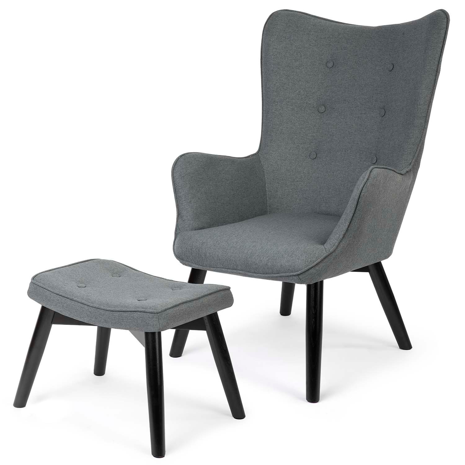 - Solid Beech Legs: The chair and footstool stand on sturdy, solid beech wood legs, providing stability and a touch of natural elegance.