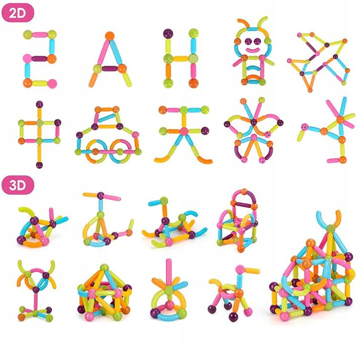 A set of magnetic blocks for little builders. Thanks to the game with cubes, children train creative thinking. These are excellent exercises for concentration and coordination of movements, the child trains spatial imagination. They have an excellent effect on sensory organs, bright colors stimulate visual perception, attention, the ability to observe and classify.