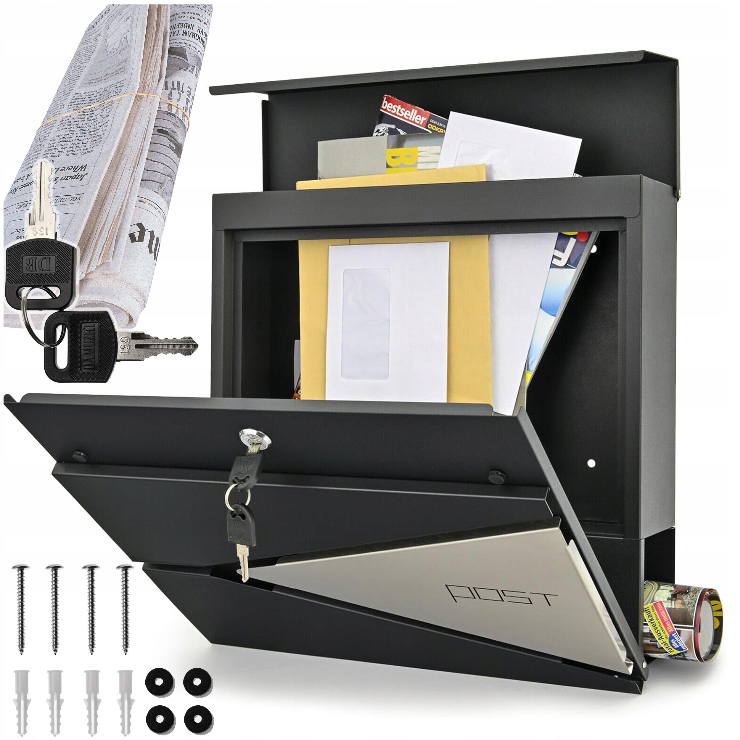 Mailbox Letterbox with Newspaper Compartment