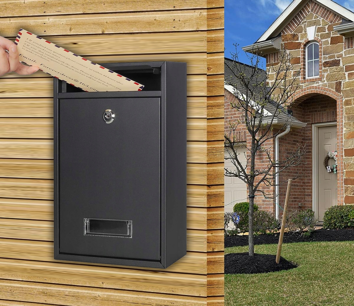 This outdoor mailbox is crafted from 0.5mm thick galvanized steel, providing robust protection against rust and physical damage. The powder-coated finish adds an extra layer of defense against rain, snow, and UV rays, ensuring your correspondence stays dry and confidential. Its minimalist design complements any architectural style.