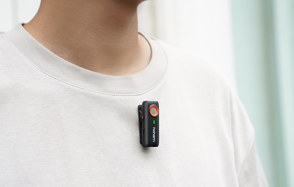 Elevate your audio with the Hohem MIC, a professional wireless lavalier microphone system designed for flawless recording. This compact 2.4GHz system features two transmitters, one receiver, and a convenient charging case. With advanced DSP noise reduction and Apple MFi certification, it delivers pristine 48kHz/16-bit sound for content creators, vloggers, and journalists.