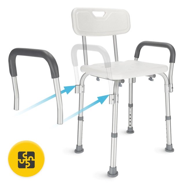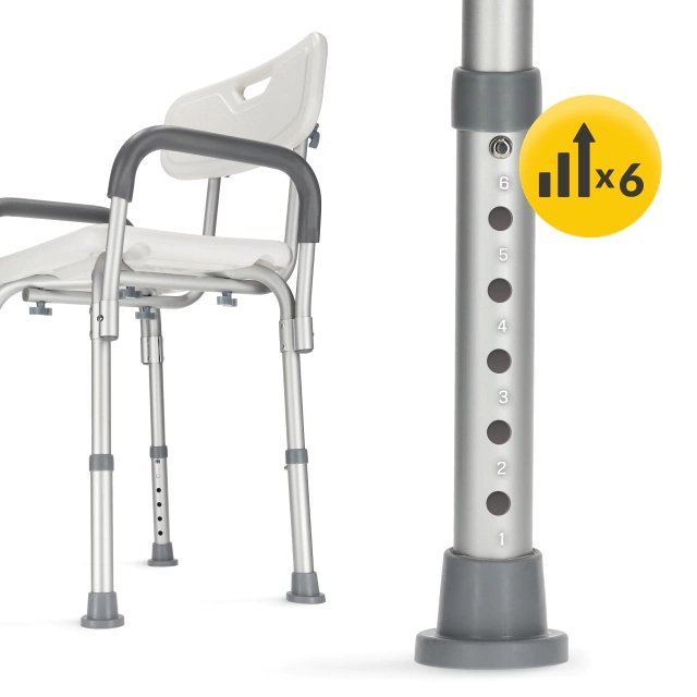This shower chair is highly versatile thanks to its modular construction. You can easily remove the backrest and armrests to convert it into a simple shower stool, adapting to your specific needs and bathroom space.