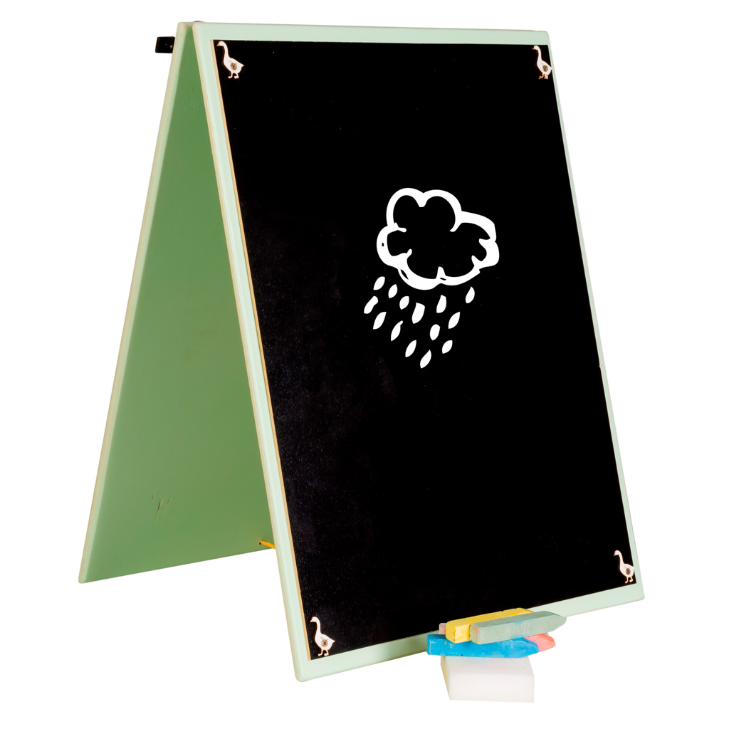 But that's not all! If your child feels like drawing, the other side features a chalkboard. The set includes chalk and a sponge, so everything is ready for creative fun right out of the box.