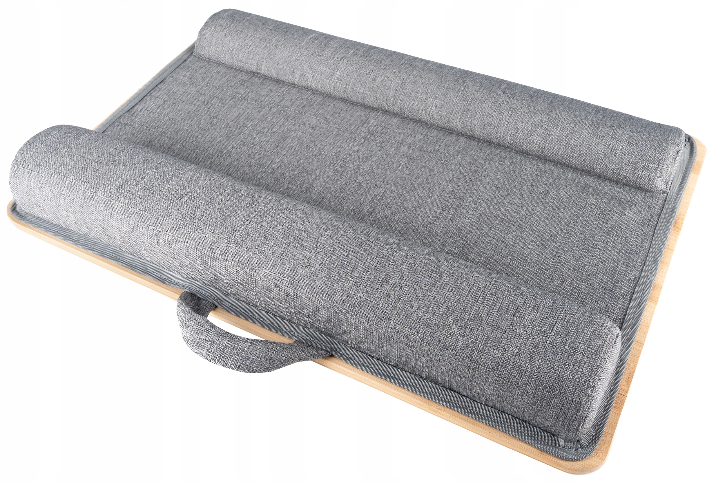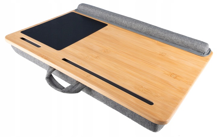 Multifunctional bamboo table for comfortable work at a laptop or relaxing with your favorite book. The table is light and small in size - easy to store.