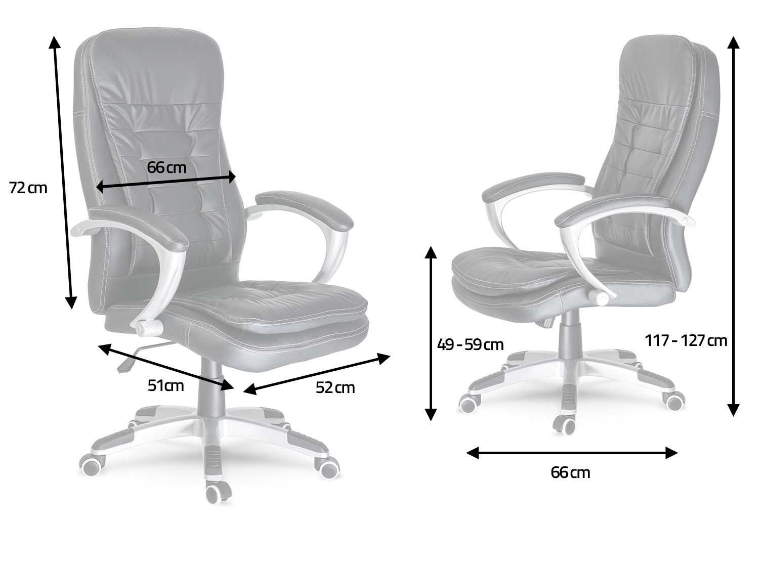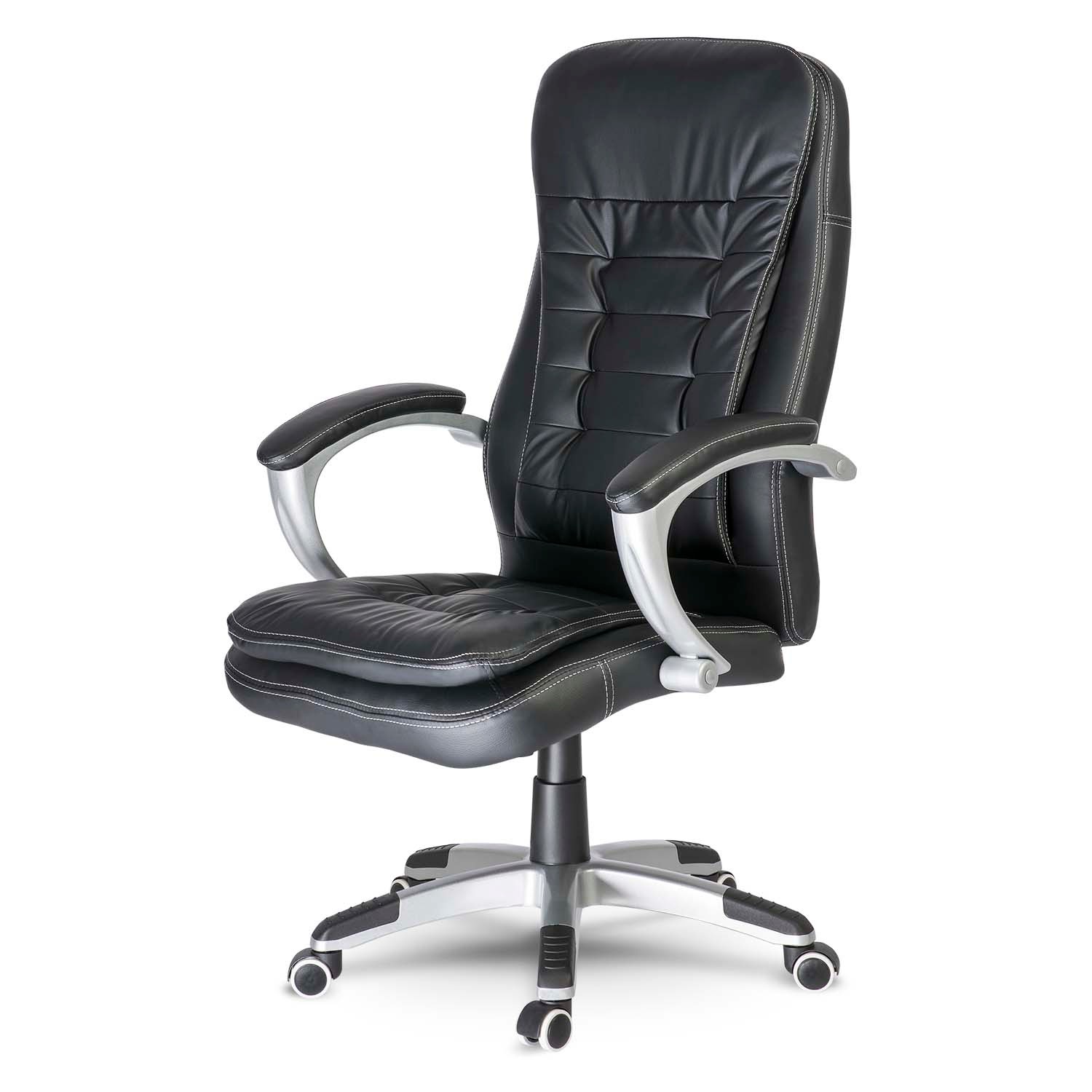 This executive leather office chair excels where others fall short. The armrests are set at an optimal height—high enough to support your elbows, yet low enough to slide smoothly under your desk. Finished with soft, durable eco-leather cushions, they provide both comfort and a touch of elegance.