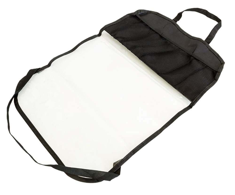 Practical organizer and protector for the back of your car’s front seat. Shields upholstery from dirt, moisture, snow, sand, and salt. Features three mesh pockets for storing toys, accessories, and other essentials.