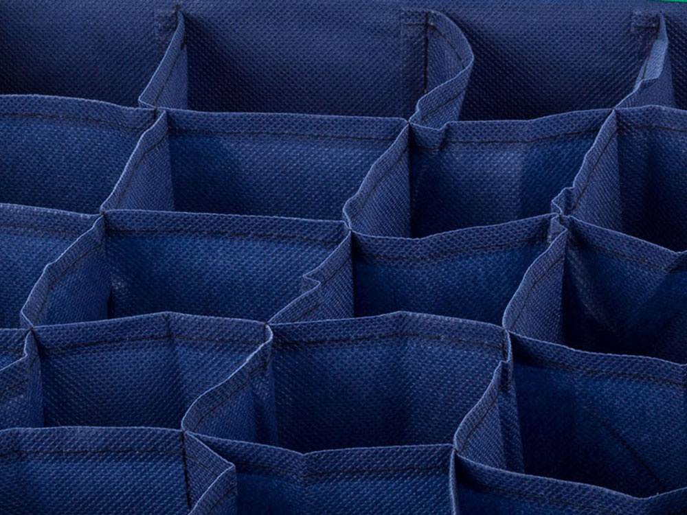 This portable container offers a simple and effective way to organize items that are often scattered loosely in drawers. The sides of the organizer are reinforced with cardboard, giving it a stable and sturdy structure, while the breathable fabric ensures your items stay fresh.