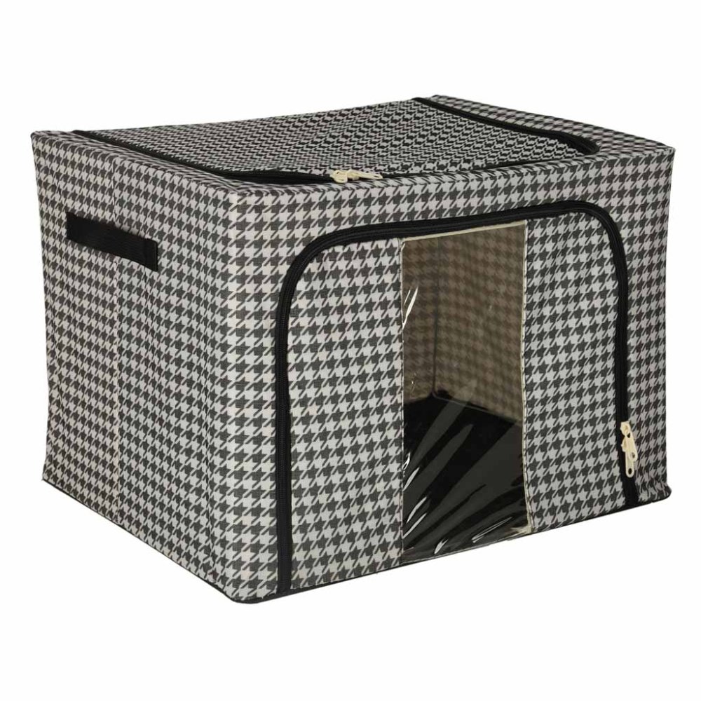 100L Wardrobe Storage Organiser Bag with Frame for Clothes and Bedding, Black and White