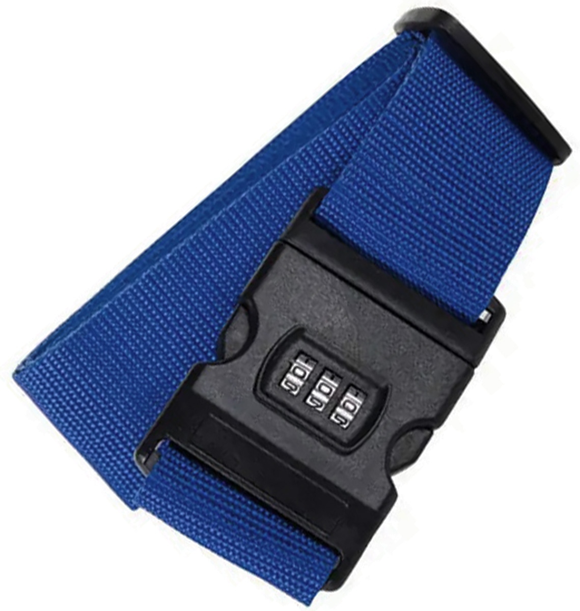 Luggage securing strap. Equipped with a solid buckle with a 3-digit security code. An additional advantage is an address tag with the possibility of entering data. Simple principle of operation, just wrap the suitcase with tape and set the desired code by pressing the side teeth of the buckle and setting three numbers without removing the clip from the buckle.