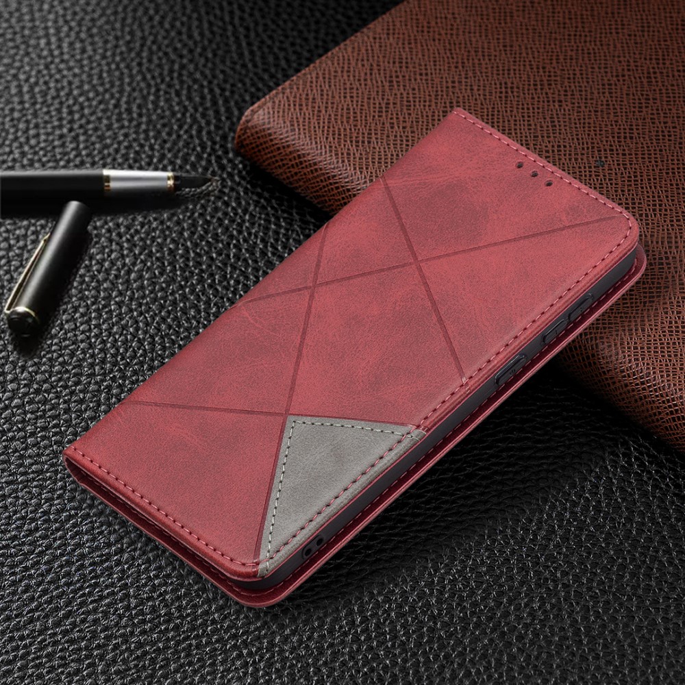 Huawei P50 Geometric Pattern Leather Stand Case Cover - Red