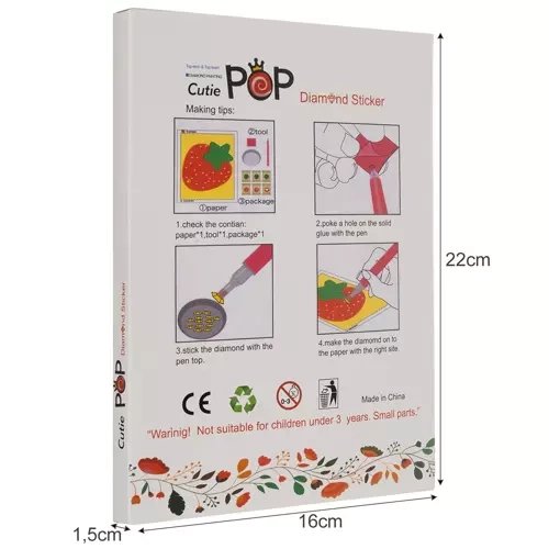 - 9 colors of diamonds packed in 12 bags (white, red, yellow, orange, green, black, teal, light pink, dark pink)