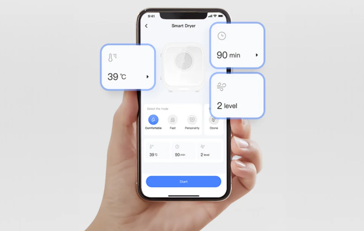 Enjoy even more convenient operation of the dryer. The device connects to your smartphone via Bluetooth and works with a dedicated app, with which you can, for example, adjust the temperature level (16-40°C), set the drying time, select the operating mode or set the airflow level. Now you always have all the most important functions at your fingertips!