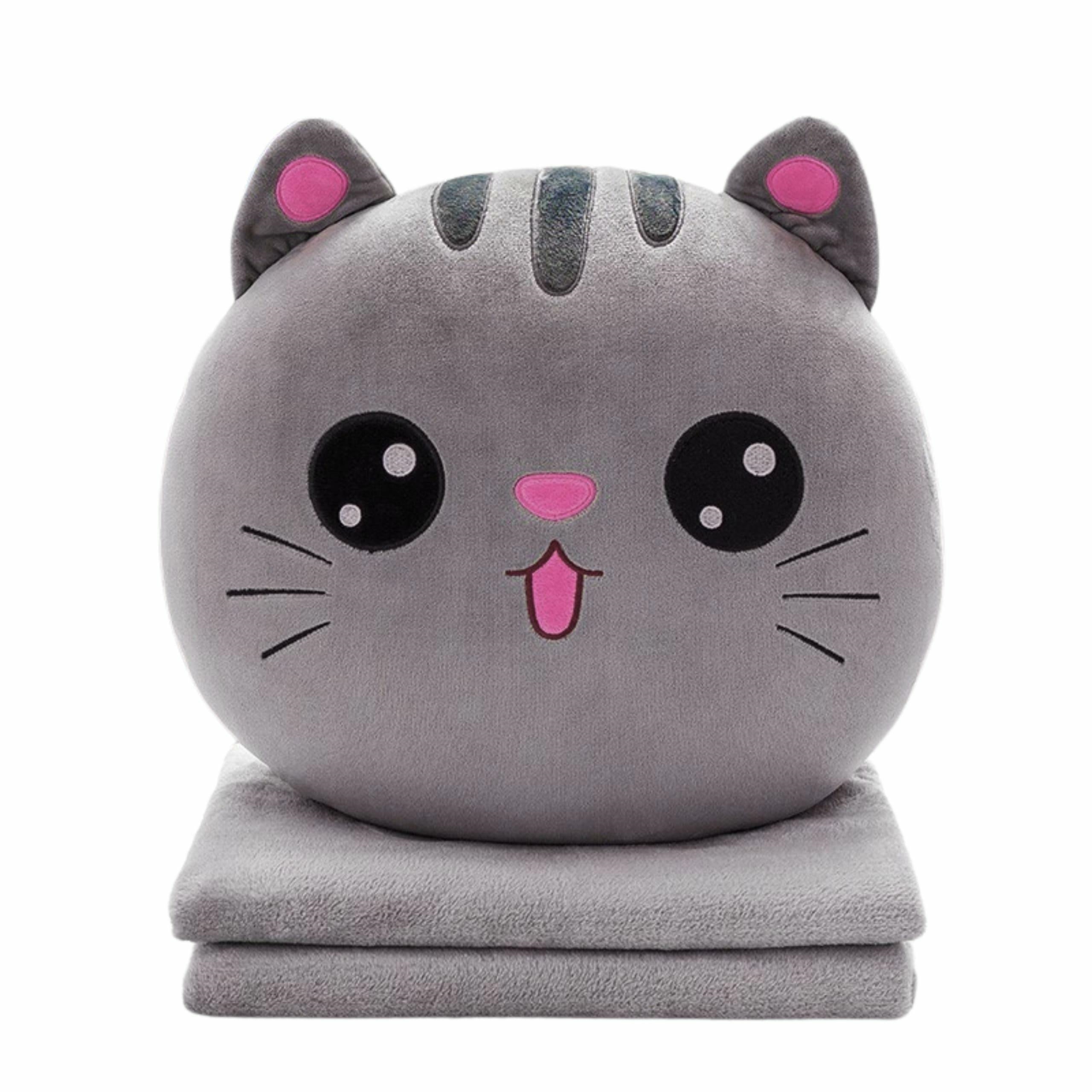 3-in-1 Plush Cat Pillow and Blanket Set DA524, Grey