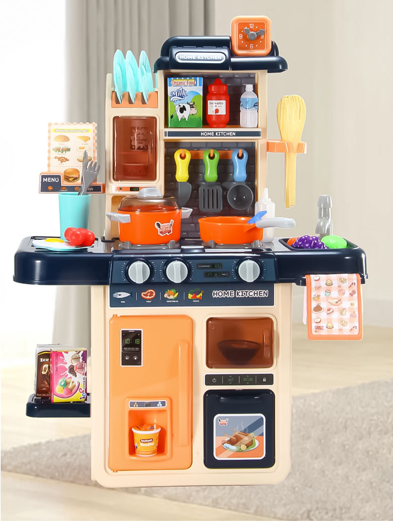 Children's play kitchen with 42 accessories is perfect for kids aged 3 and up. The set includes a variety of kitchen utensils, dishes, fruits, vegetables, and other play items, allowing children to role-play as a chef and prepare delicious meals for family and friends.