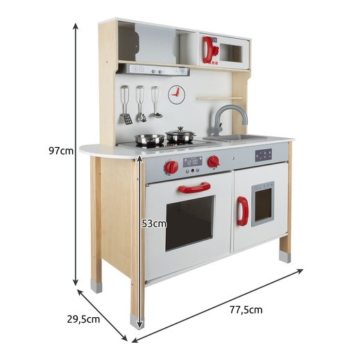 Children are naturally curious about the world and like to imitate others. They learn through observation and play. A wooden kitchen is a fantastic way to spend time in an attractive way for children who love playing house and preparing meals. It will allow you to play roles from an early age and will have an educational function. The product is a great idea for staving off boredom, especially when the weather is bad outside.