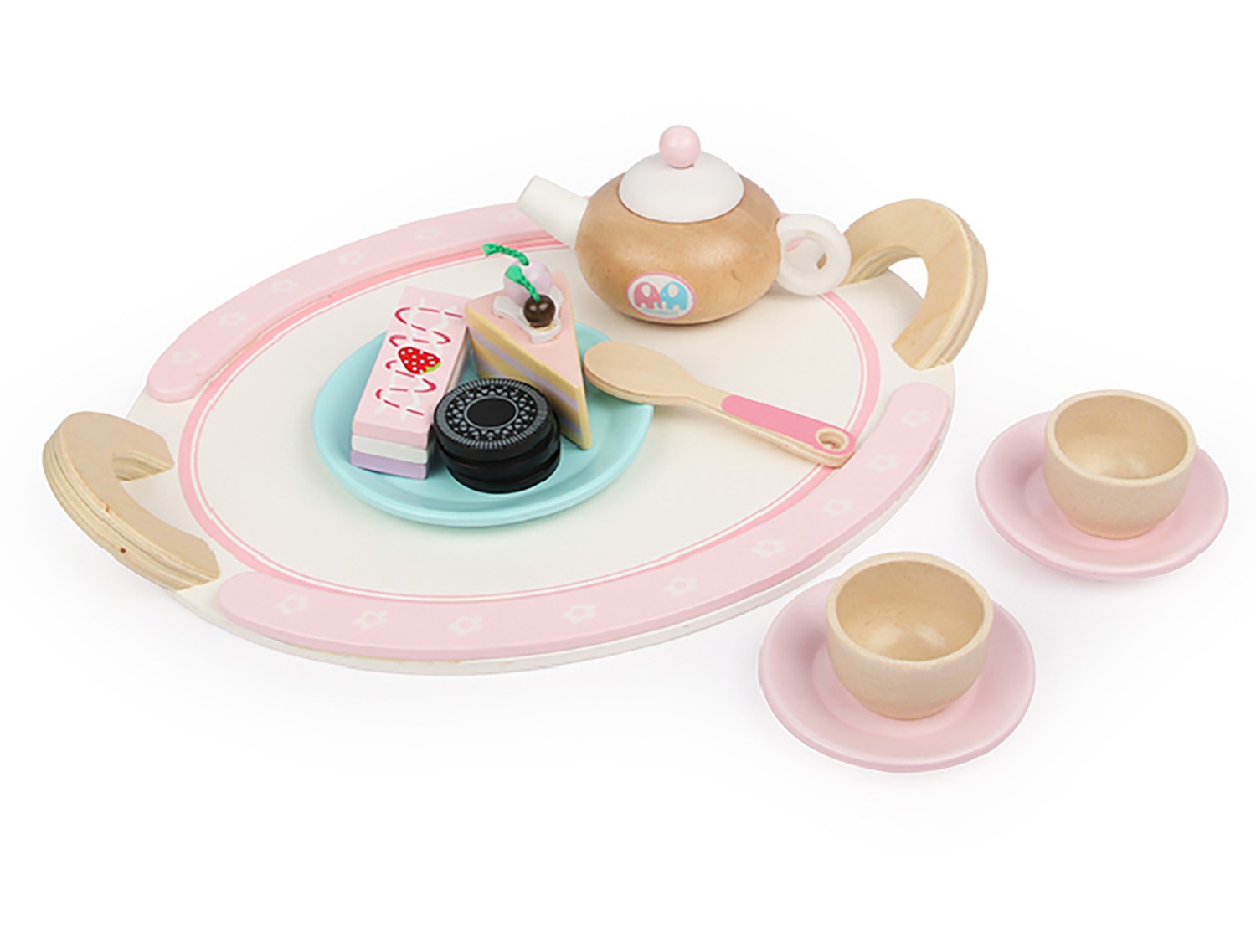 Kids Wooden Tea Set with Teapot Cups and Cookies