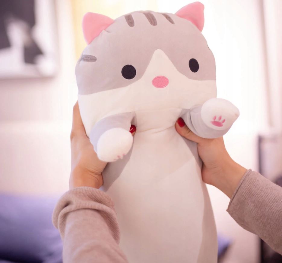 A long cat-shaped pillow is a charming and unique addition to your interior. This soft and cozy pillow has been carefully designed to resemble the shape of a cute kitten, with bulging ears and expressive eyes.