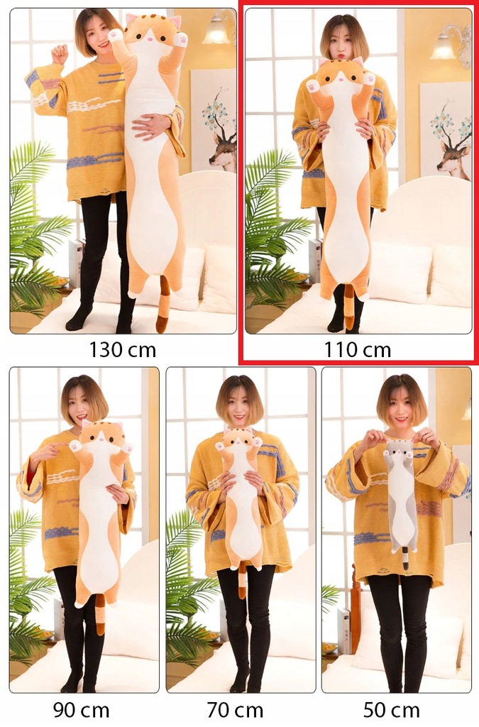 Plush Long Cat-shaped Hugging Pillow, 110cm
