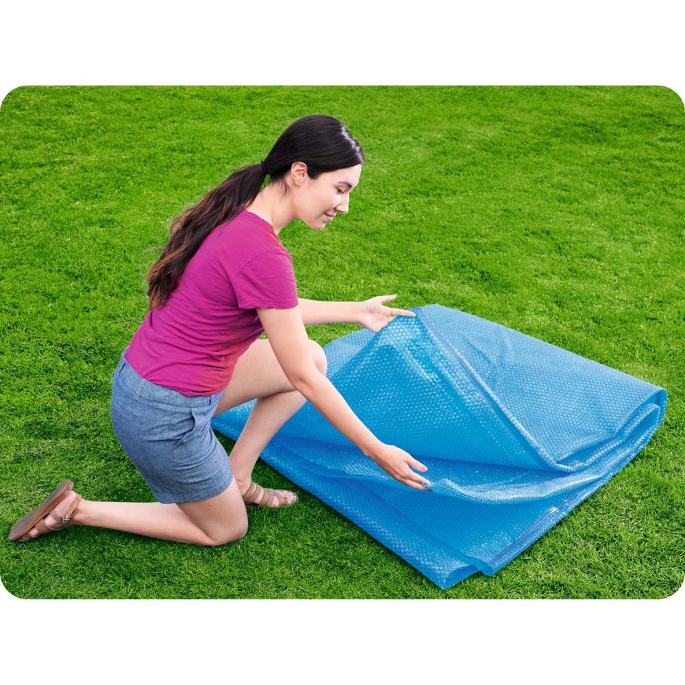 The Bestway solar cover is a practical solution for garden pools, helping to maintain water temperature and reduce heat loss.