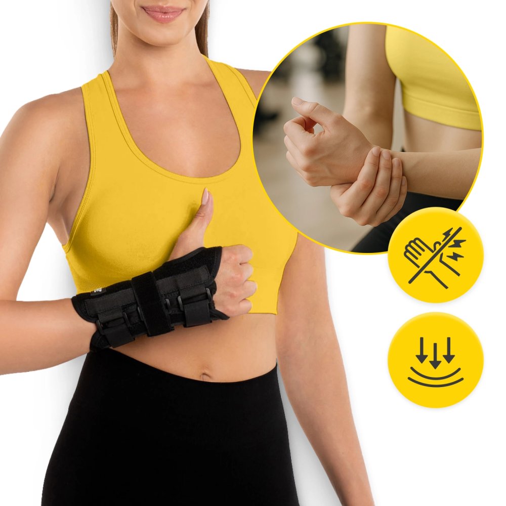 The 4Fizjo wrist orthosis is designed to stabilize and protect the right hand after injuries, sprains, or overloads.