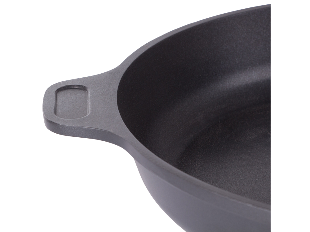 The 28 cm frying pan with a non-stick coating is suitable for use on induction and gas stoves. Its durable cast aluminum construction and ergonomic handle ensure comfort and long-lasting performance for everyday cooking.