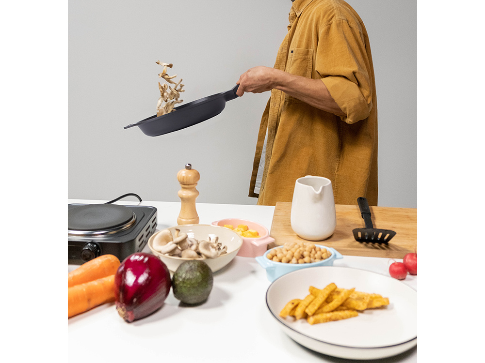 The 20 cm frying pan with a non-stick coating is made of cast aluminum, which quickly and evenly distributes heat for perfectly browned food. The non-stick surface prevents food from sticking, making cooking and cleaning easier, while allowing you to use minimal amounts of fat for healthier meals.