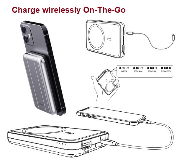This power bank is designed for maximum portability. Its small footprint and lightweight design make it easy to carry in a pocket or bag, while the magnetic attachment ensures a secure connection to your phone without messy cables.