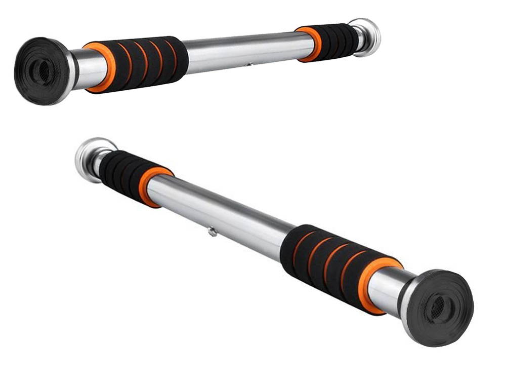 Adjustable Steel Pull-Up Bar for Doorway with Neoprene Grips, Orange